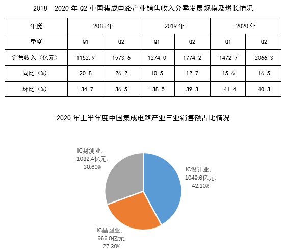 2020年上半年度中国集成电路产业发展情况